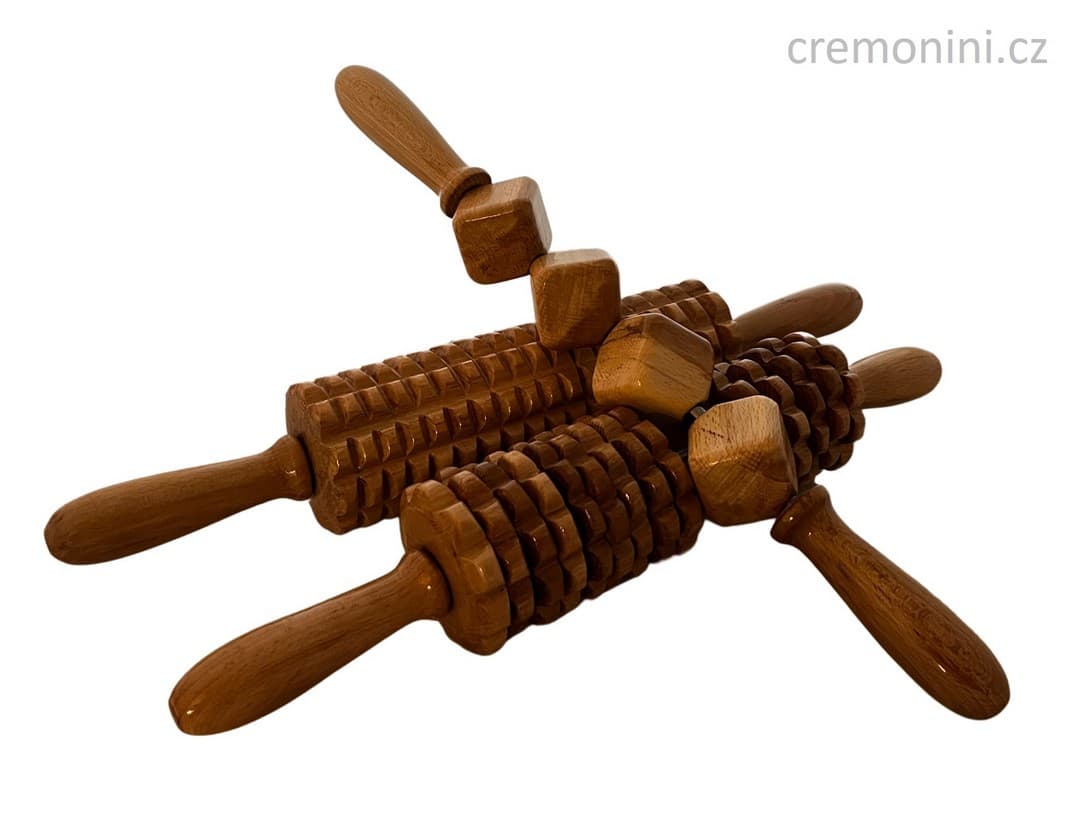 dřevěné tyče a hranoly. Tyto dřevěné nástroje mají různé tvary a velikosti, což umožňuje přizpůsobit masáž individuálním potřebám klienta.